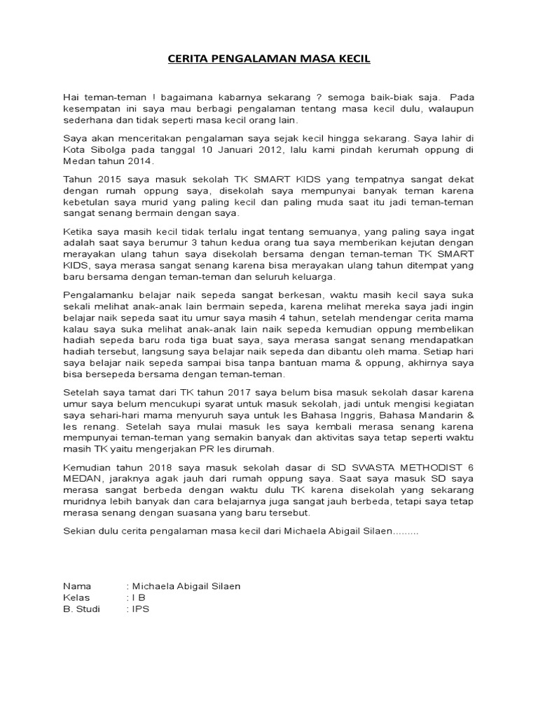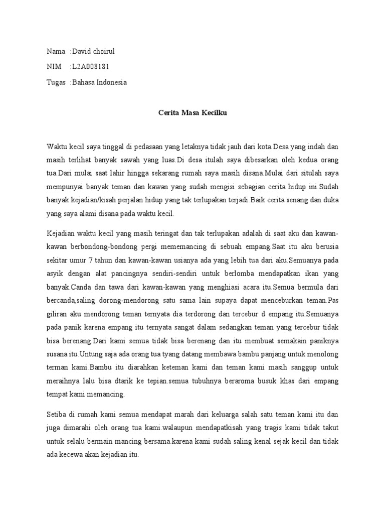 membuat cerita pengalaman masa kecil dalam bahasa inggris minimal 50 kalimat - Brainly.co.id