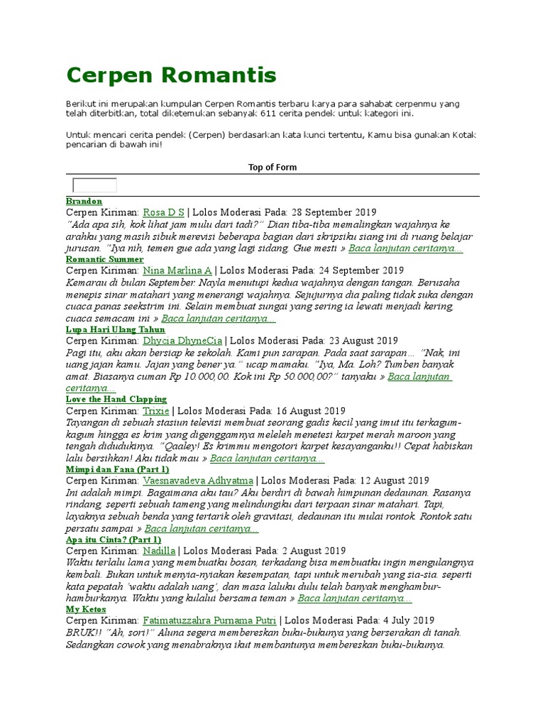 DOC) Cerpen Cinta Romantis Remaja | Kang Taqwim - Academia.edu