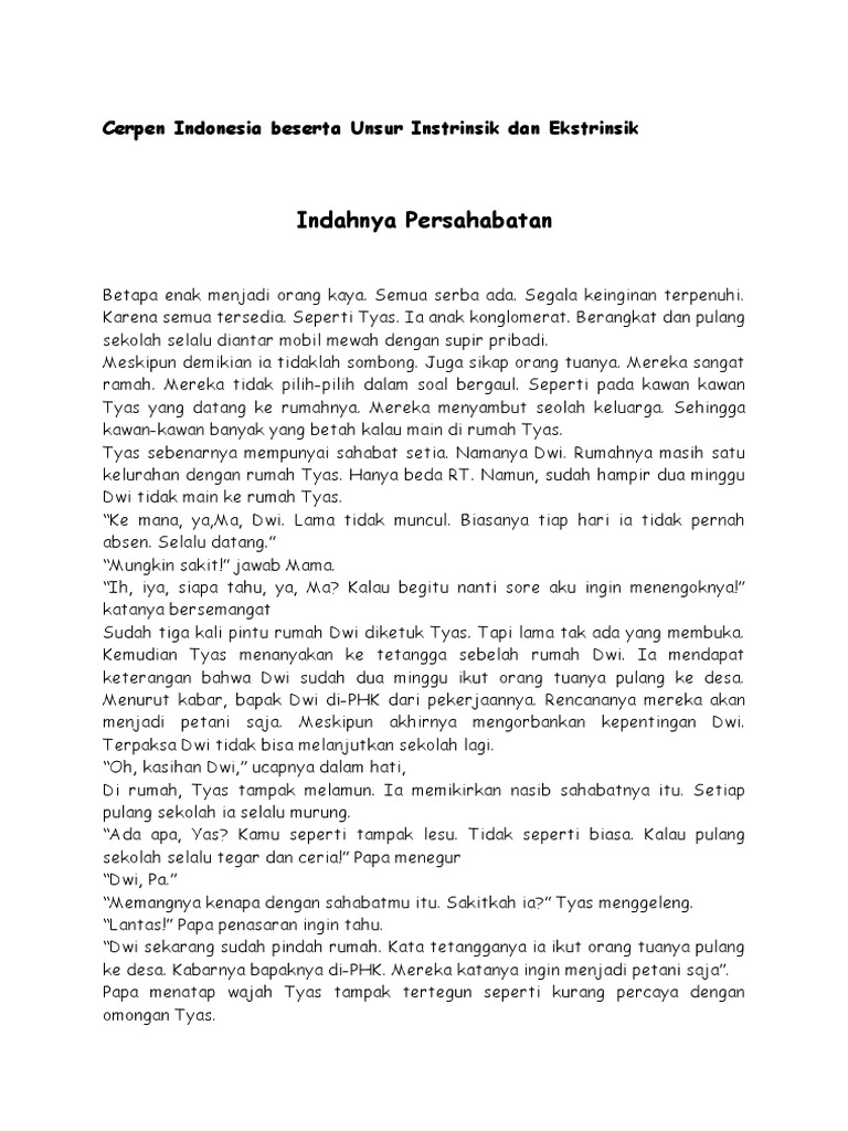 Contoh Cerpen Persahabatan Beserta Unsur Intrinsiknya Dan …