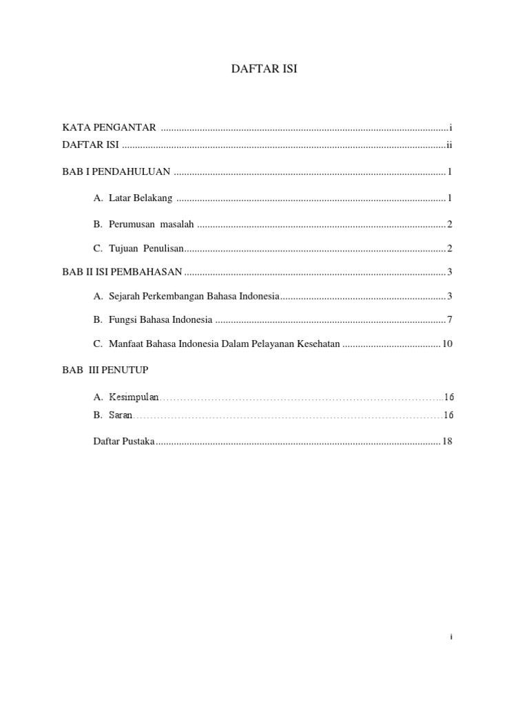 Daftar Isi Makalah Bahasa Indonesia
