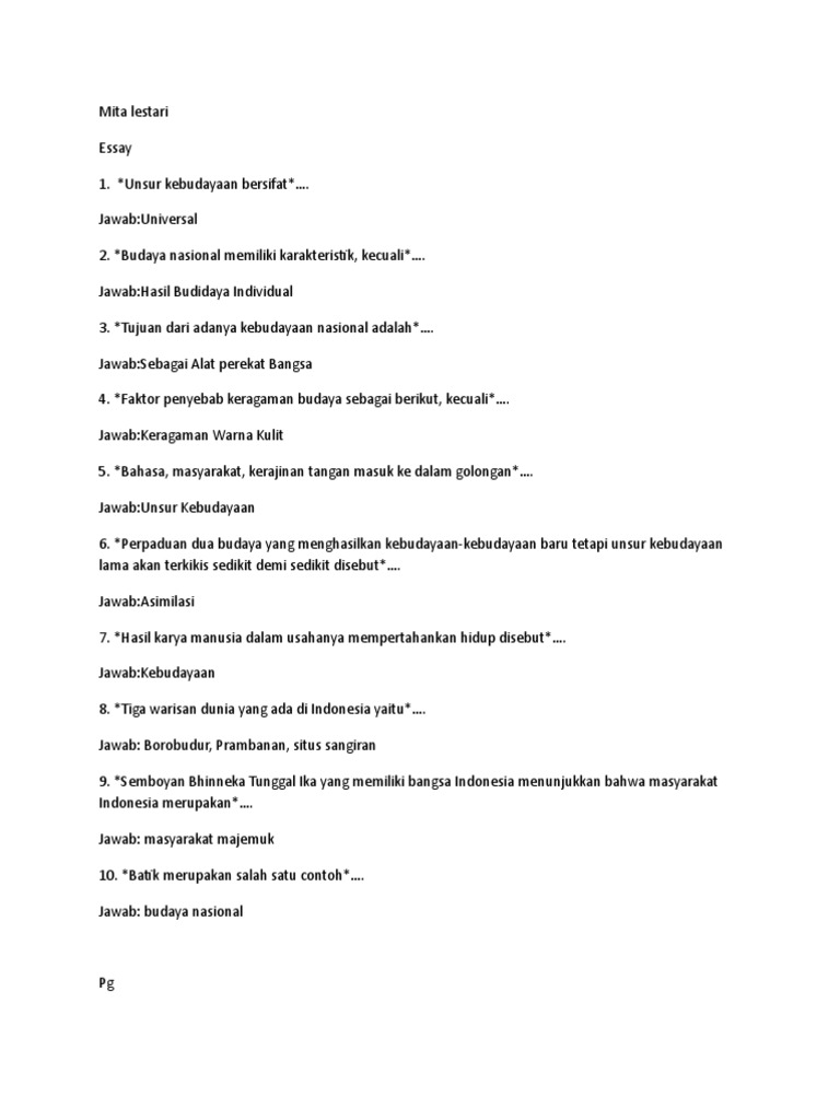 Contoh soal essay seni budaya beserta jawabannya