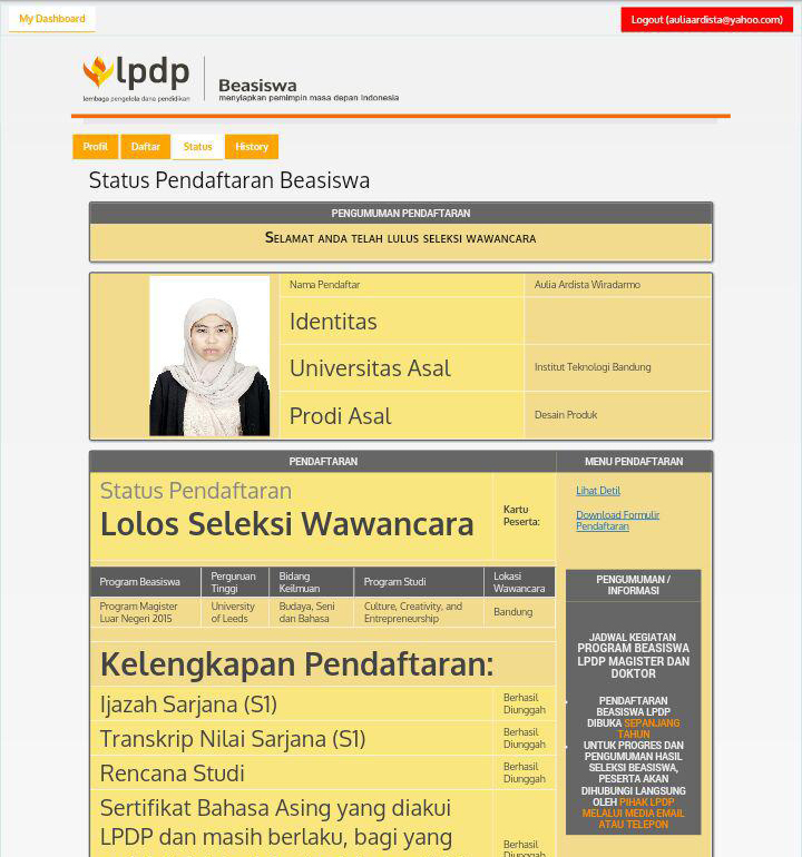 Perjalanan Beasiswa. Sampai saat ini, saya masih sulit