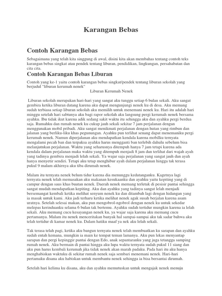 contoh karangan bebas singkat beserta syarat dasar penulisannya - Brainly.co.id