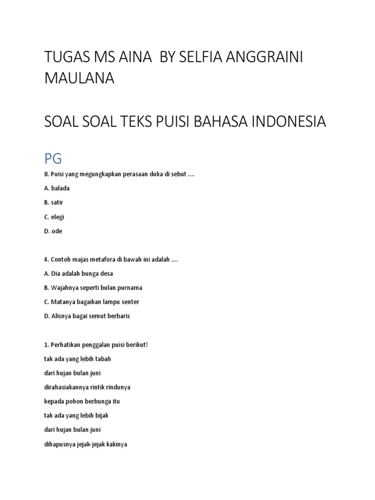 Contoh Majas Paralelisme Dalam Puisi Hujan Bulan Juni
