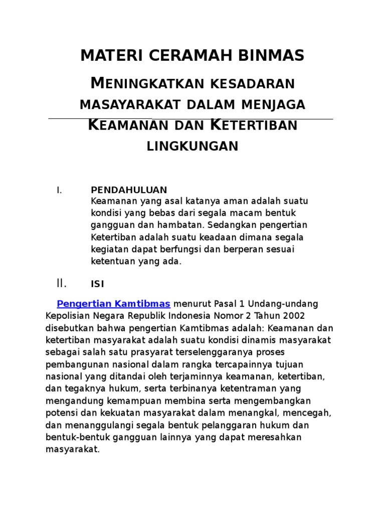 contoh pidato tentang kamtibmas - Brainly.co.id