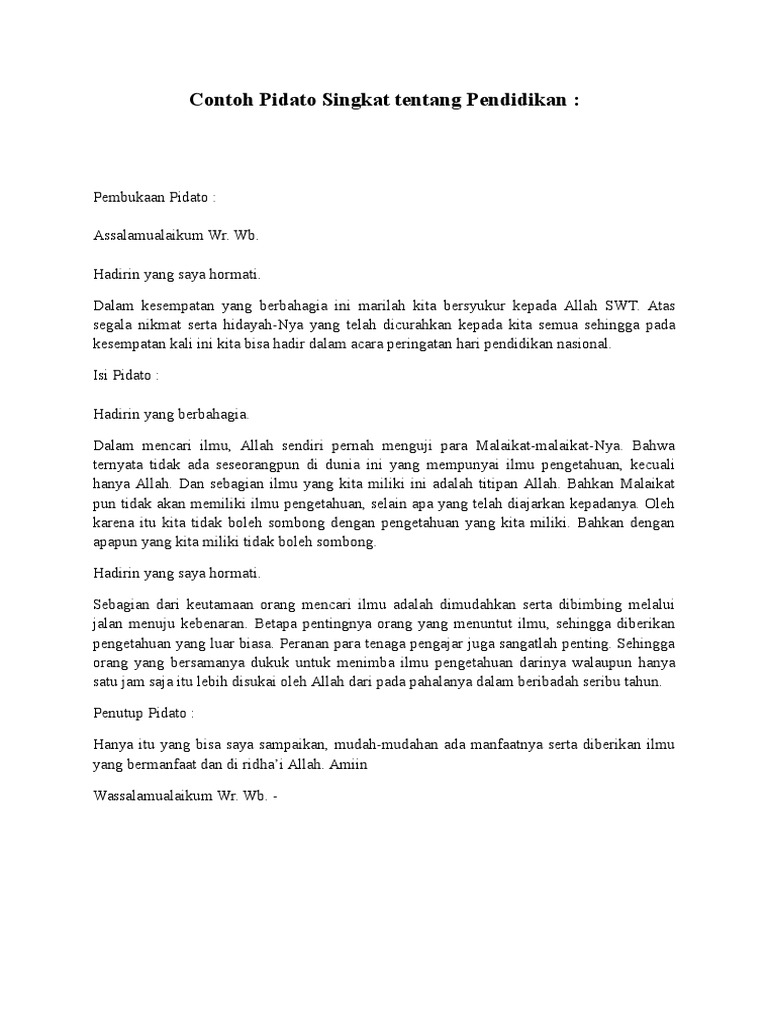 DOC) Contoh Pidato Singkat Pendidikan | indah mokobombang - Academia.edu