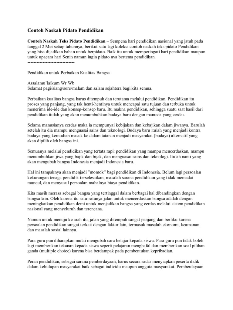 DOC) Contoh Naskah Pidato Hari Pendidikan Nasional 2 | Muhamad Idris - Academia.edu