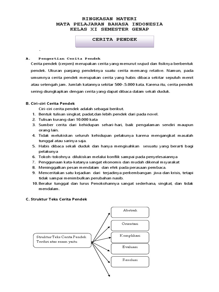 DOC) MATERI B. IND kelas XI: STRUKTUR dan KEBAHASAAN CERPEN | Dwi Kristianto - Academia.edu