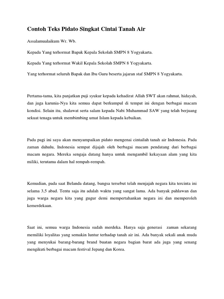 DOC) contoh teks pidato patriotisme indonesia | badriyah nurhaliza - Academia.edu