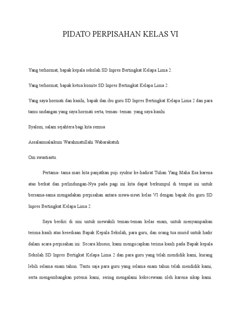 contoh pidato perpisahan kelas 6 Minimal 4 atau 6 paragraf …