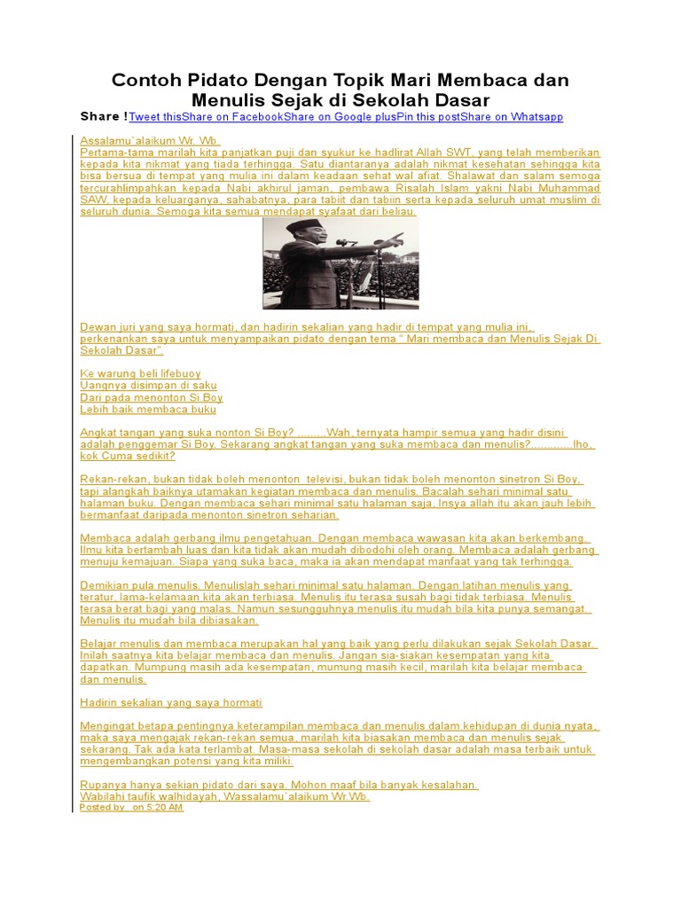 Contoh Pidato Dengan Topik Mari Membaca Dan Menulis Sejak Di …