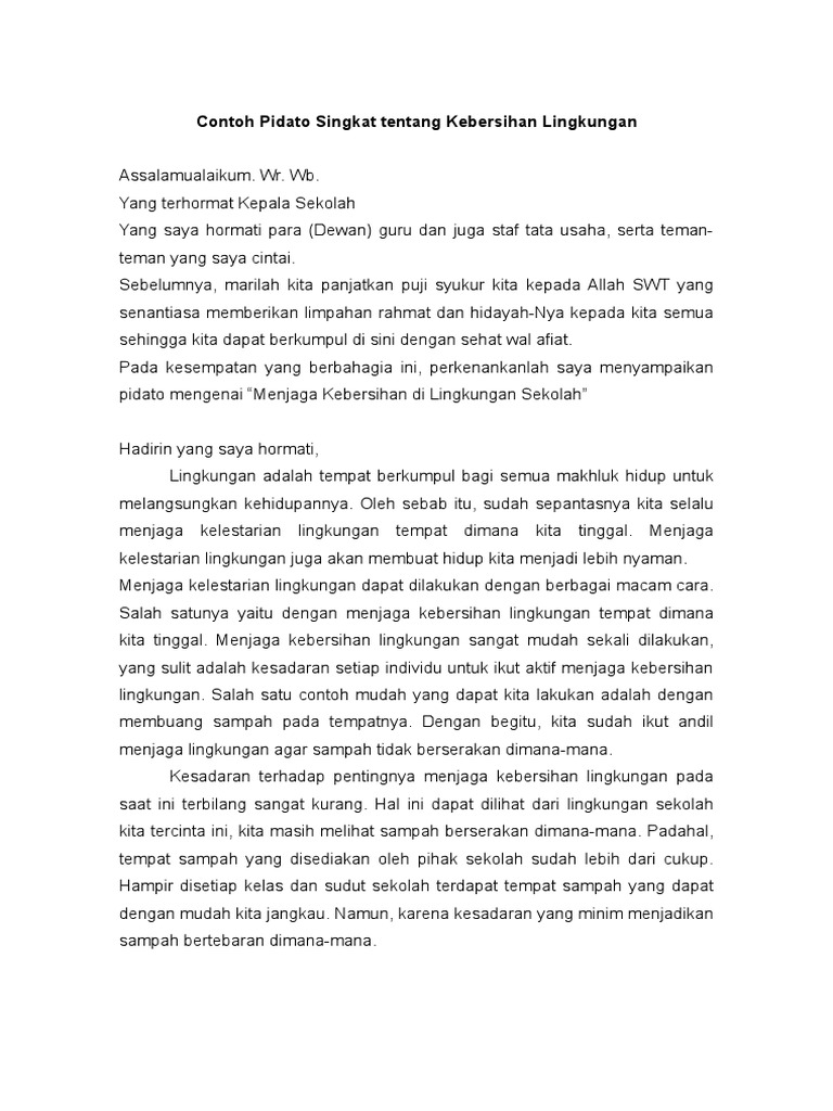 DOC) Contoh pidato singkat tentang lingkungan sekolah | Dhlie …