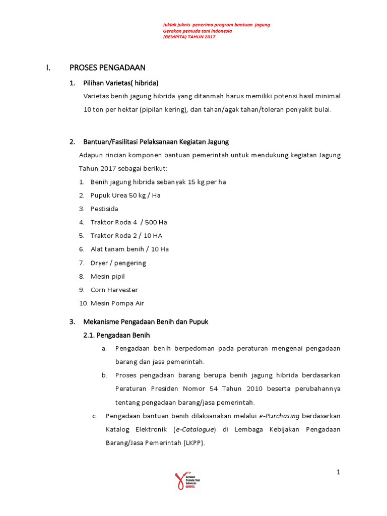 PETUNJUK PELAKSANAAN KEGIATAN BUDIDAYA JAGUNG TAHUN 2017