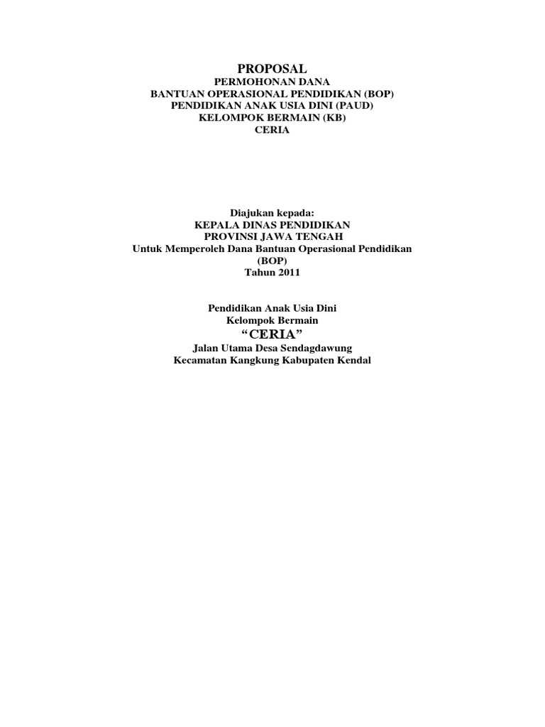 DOC) Proposal Pengajuan Dana BOP PAUD | Mubasyir Nh - Academia.edu