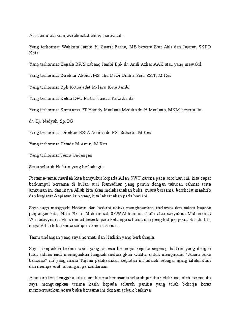 Contoh Kata Sambutan Pembukaan Acara Buka Puasa | informasi adalah