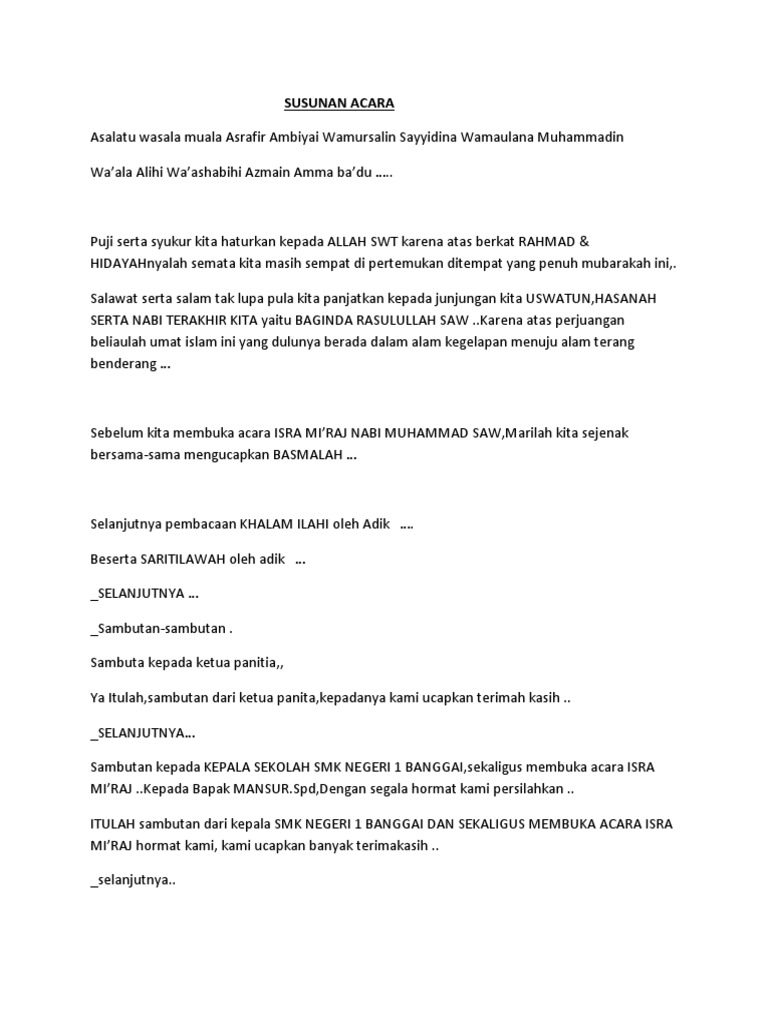 Contoh Susunan Acara Isra Miraj Di Masjid