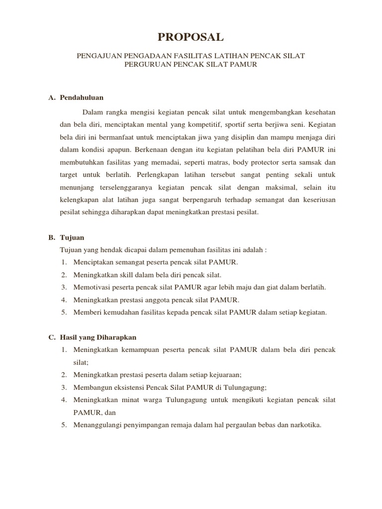 PDF) CONTOH PROPOSAL MUSYAWARAH PROVINSI IKATAN PENCAK SILAT INDONESIA | EKO BUDI SULISTIO - Academia.edu
