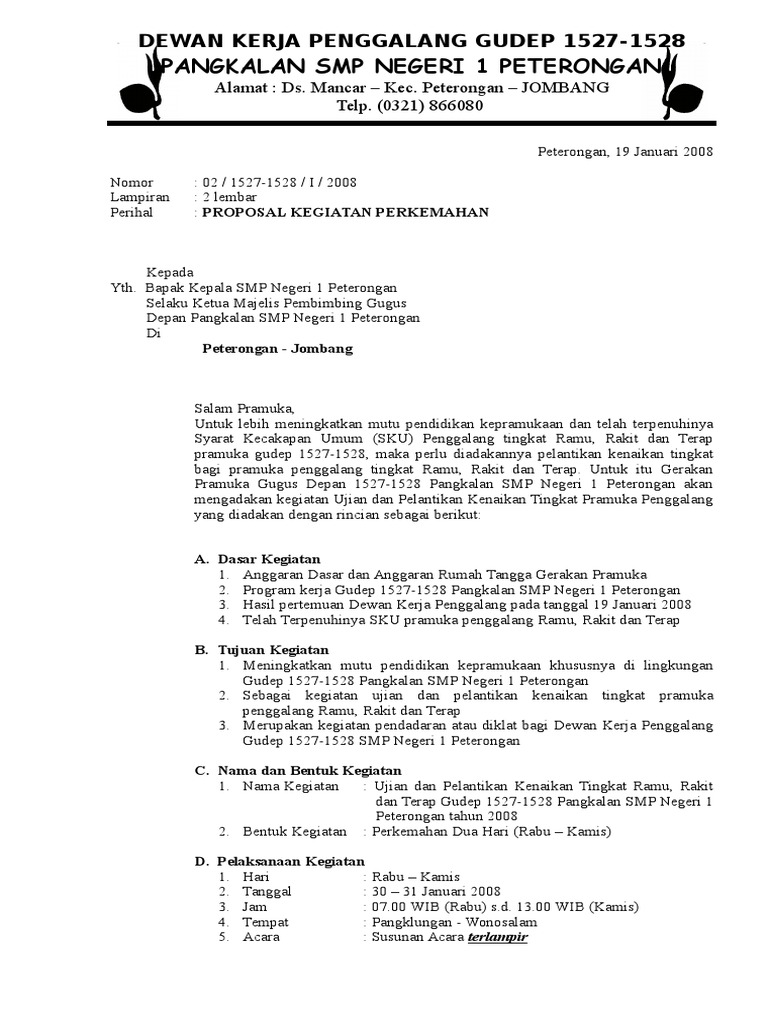 Contoh Proposal Kegiatan Perkemahan Pramuka Penggalang - Barisan …