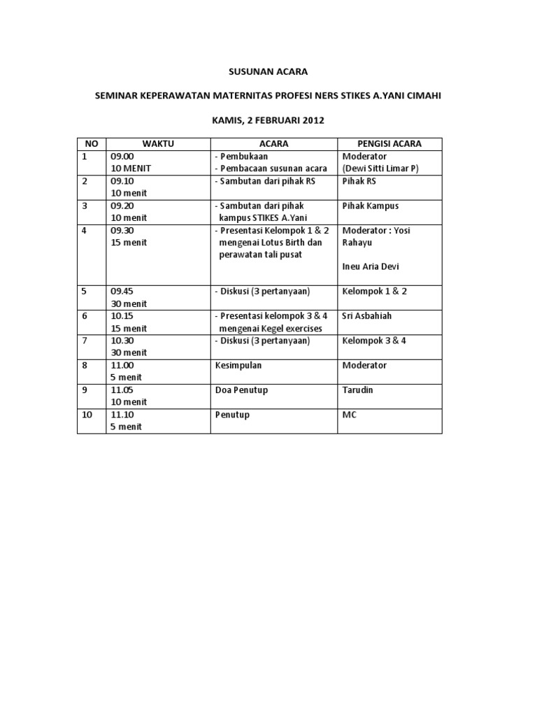 susunan acara seminar keperawatan maternitas profesi ners stikes a.