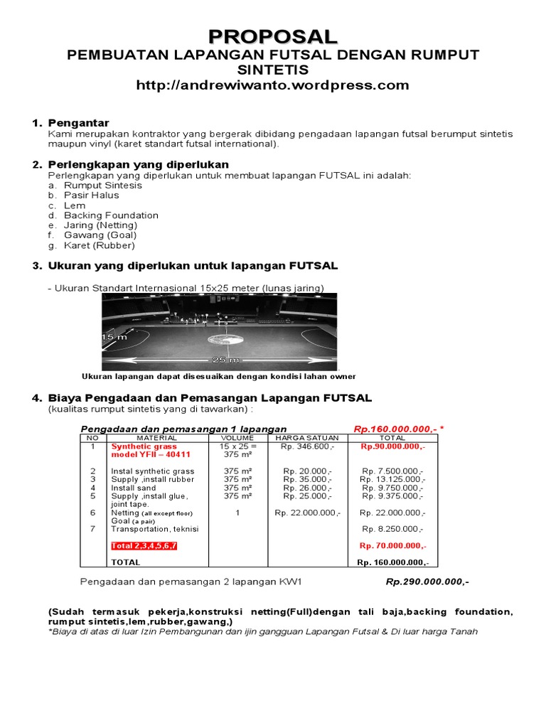 Proposal pembuatan lapangan futsal | jual karpet rumput sintetis