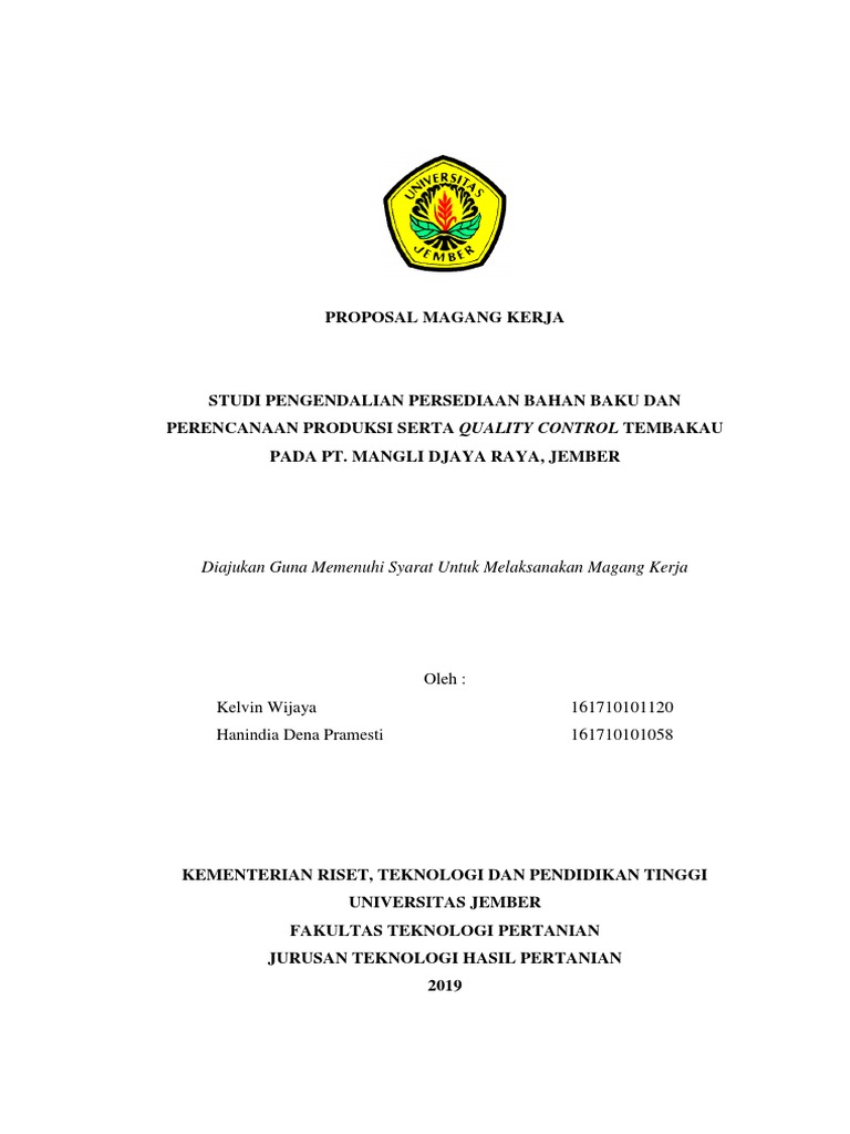 DOC) CONTOH PROPOSAL MAGANG TEKNOLOGI HASIL PERTANIAN | Diky Wibowo - Academia.edu