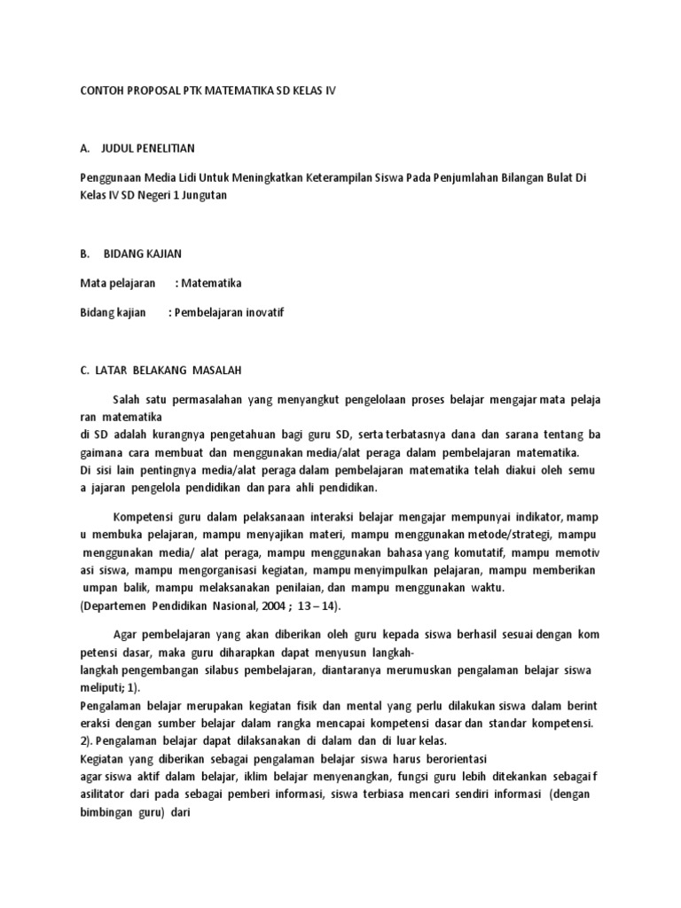Contoh Proposal Ptk Matematika Sd Kelas IV - [DOCX Document]