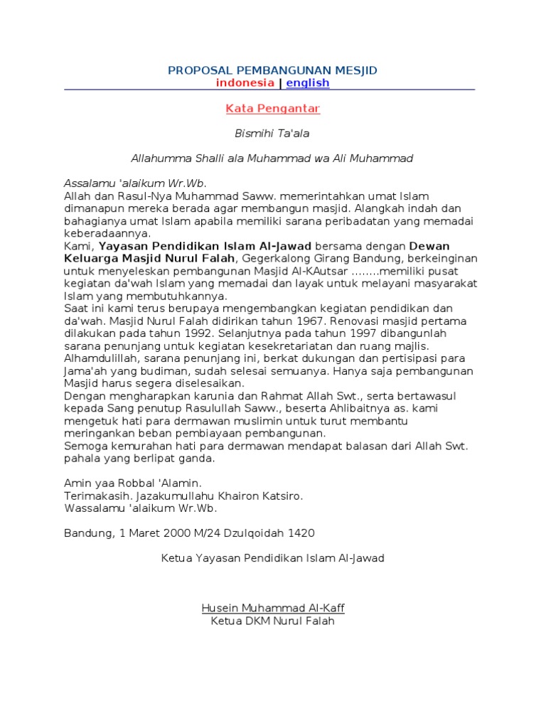PROPOSAL PEMBANGUNAN MESJID contoh