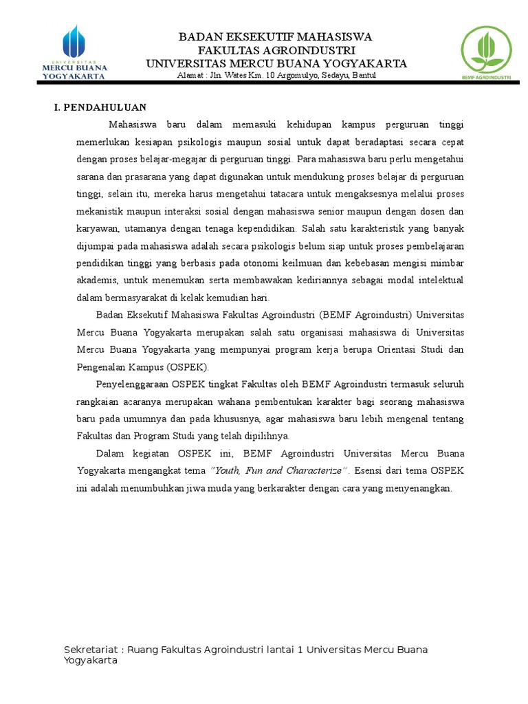 PDF) PROPOSAL ORIENTASI STUDI DAN PENGENALAN KAMPUS (OSPEK) KE-II | Miftachur Rohman - Academia.edu