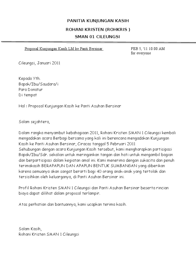 Contoh Proposal Kunjungan Panti Asuhan mosi