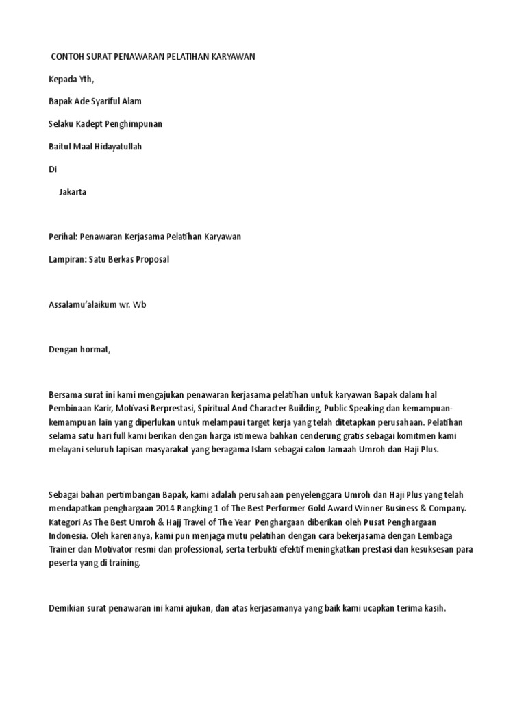 CONTOH SURAT PENAWARAN PELATIHAN KARYAWAN | Markas Barang Bekas - Academia.edu