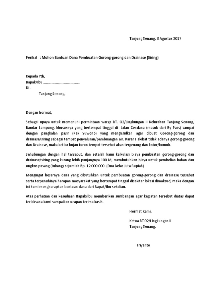 Contoh Proposal Permohonan Bantuan Perbaikan Saluran Air - Cute766