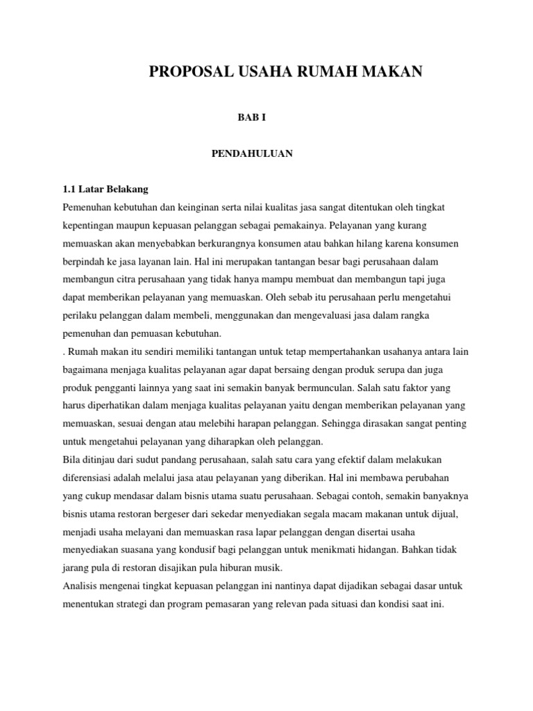 Contoh Proposal Usaha Rumah Makan Pdf - kitelitlesite