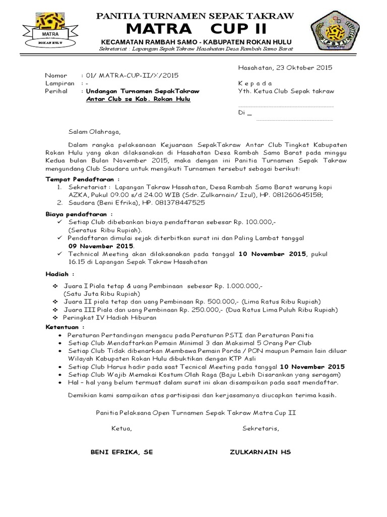 Contoh Proposal Permohonan Bantuan Dana Kegiatan Turnamen Sepak …