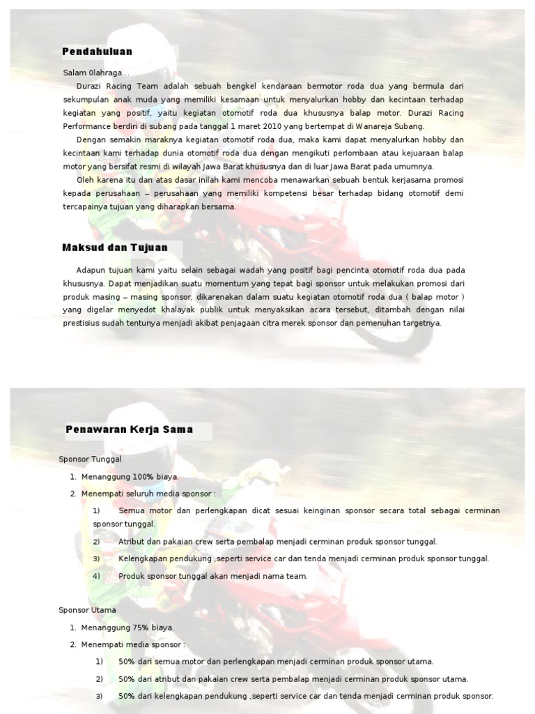 Contoh Proposal Pengajuan Sponsor Balap Motor - Berbagi Contoh Proposal