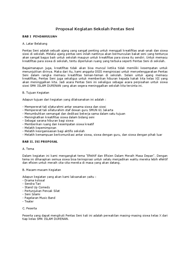 DOC) Contoh Proposal Pentas Seni | Reygina Yolla - Academia.edu