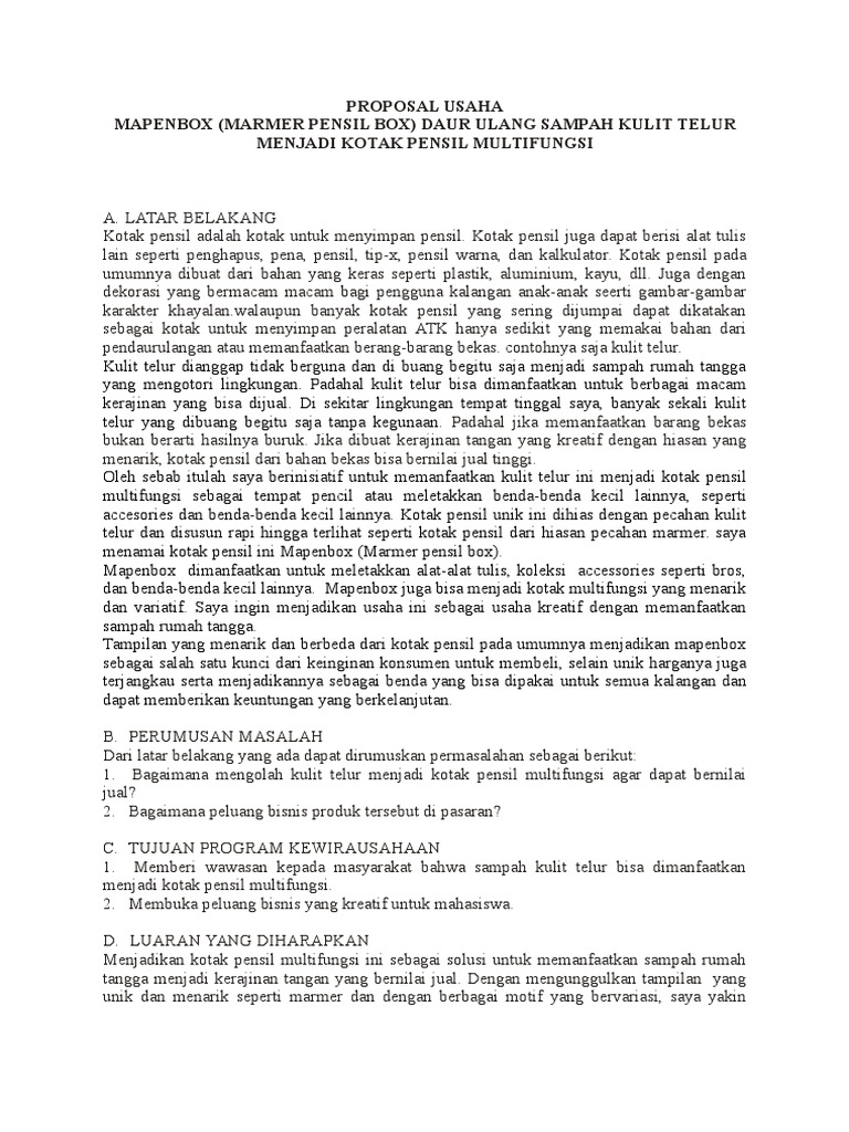 DOC) Contoh proposal usaha | Eko Budi - Academia.edu