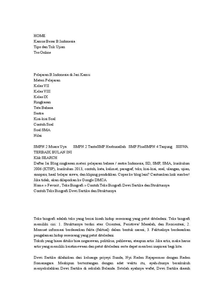 Contoh Soal Menentukan Pertanyaan Atas Isi Teks Biografi - PELAJARAN BAHASA INDONESIA DI JARI KAMU