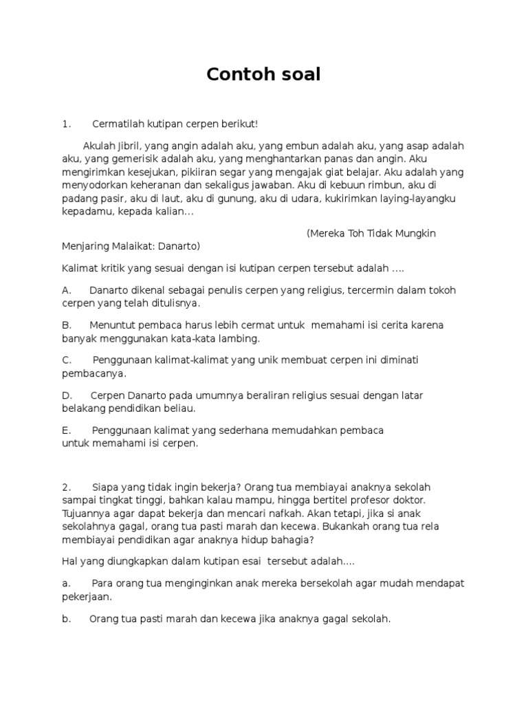 PDF) Contoh Soal Bahasa Indonesia Kelas XI Kurikulum 2013 #CERPEN | Syonia Hidayah - Academia.edu