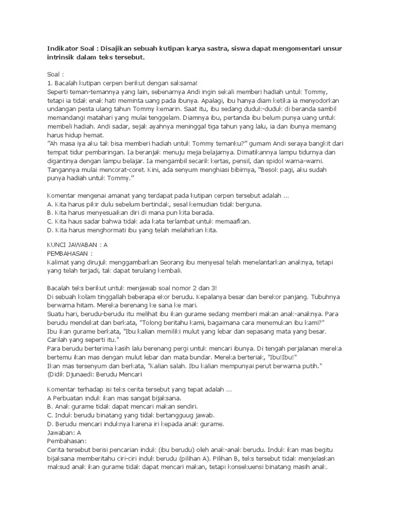Contoh Soal Cerpen Dan Jawabannya - Peranti Guru
