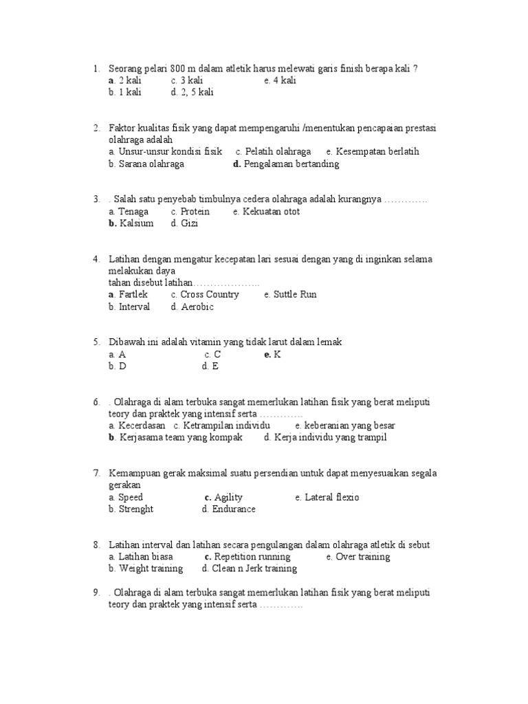 Kumpulan Soal Penjas 50 Soal Berserta Jawaban 1 - [DOC Document]