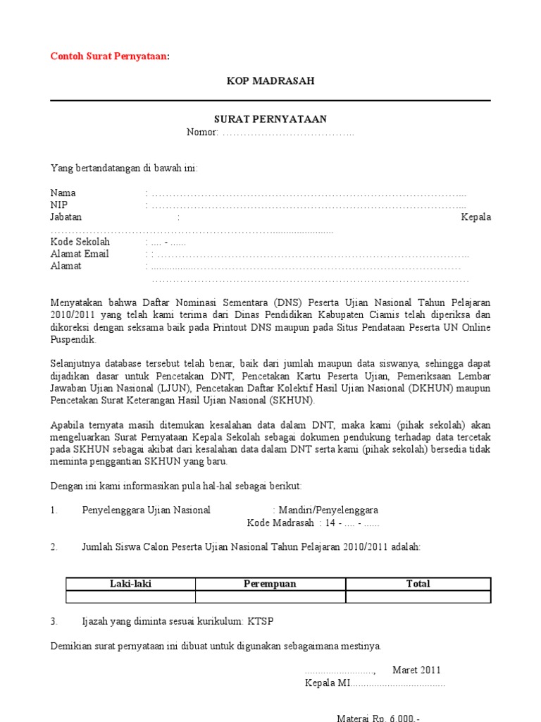 Contoh Surat Keterangan Kesalahan Penulisan Ijazah Format Word