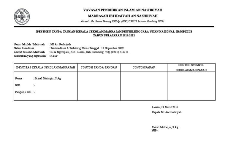 Contoh Spesimen Tanda Tangan Kepala Sekolah Administrasi Tata Usaha Sekolah Terbaru Tahun 2015-2016.doc - File Kita Kita