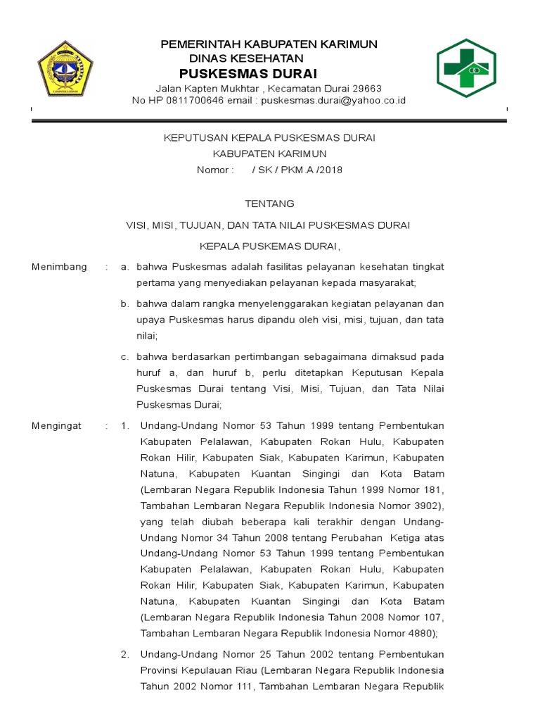 Contoh Sk Visi Misi Klinik Pratama - Guru Ilmu Sosial