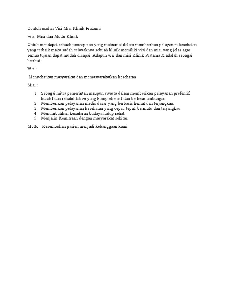 Contoh Usulan Visi Misi Klinik Pratama