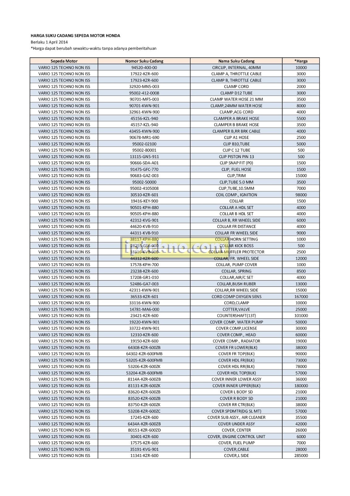 Info Harga Terbaru: Harga Sparepart Motor Honda Vario 125 Terbaru 2014 - 2015