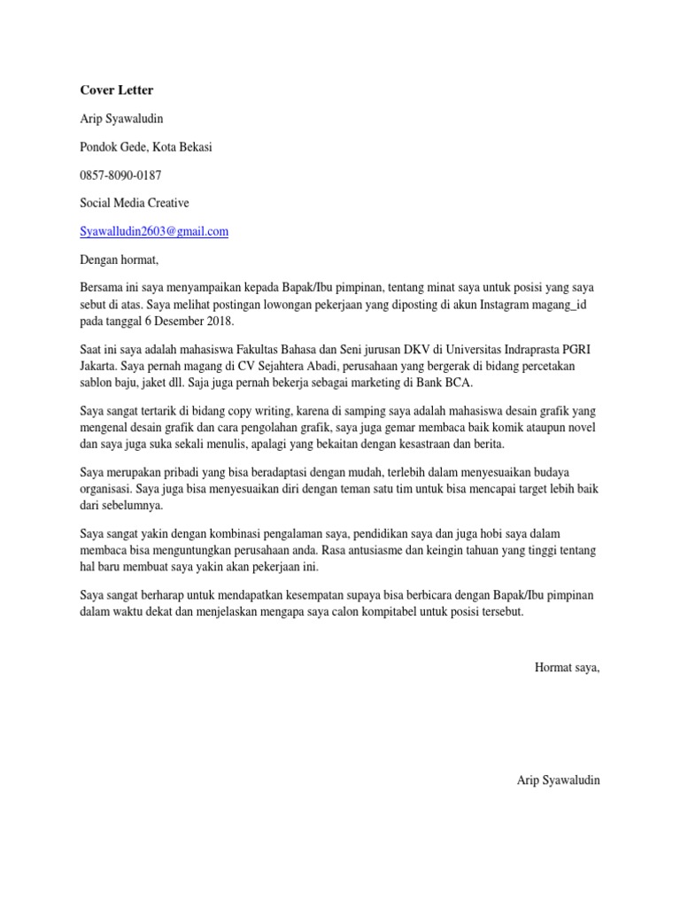 Cover Letter Contoh Magang (in 2020).