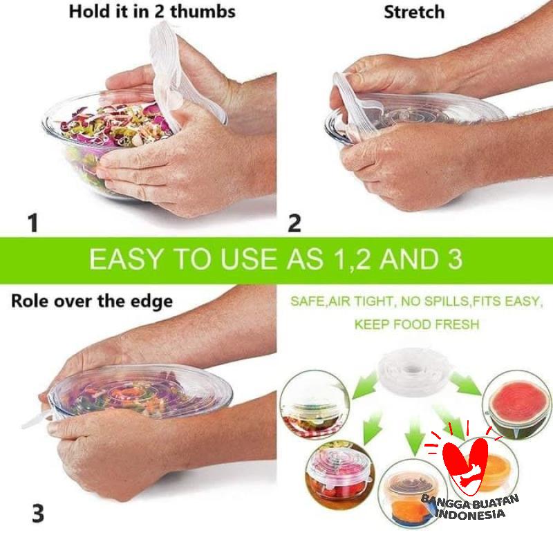 6 IN 1 STRETCH BOWL COVER LID SILICONE FOOD COVER / PENUTUP …