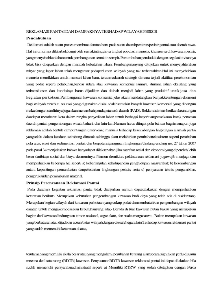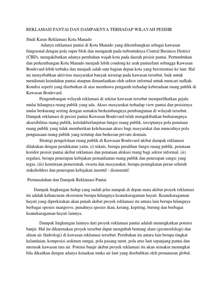 DOC) REKLAMASI PANTAI DAN DAMPAKNYA TERHADAP WILAYAH PESISIR | cok …