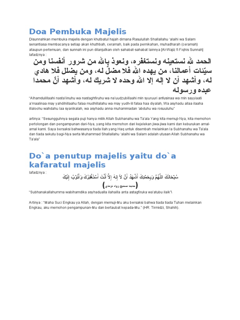 DOC) Ada beberapa doa pembuka majelis yang dapat kita gunakan saat membuka suatu pembicaraan atau mengawali pidato | Ismail saputra - Academia.edu