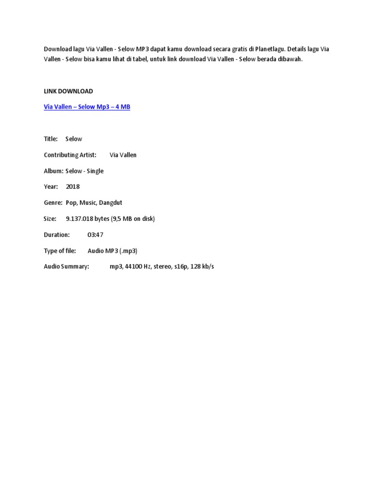 4.36 MB] Download Lagu Via Vallen - Selow MP3 - GRATIS Cepat Mudah